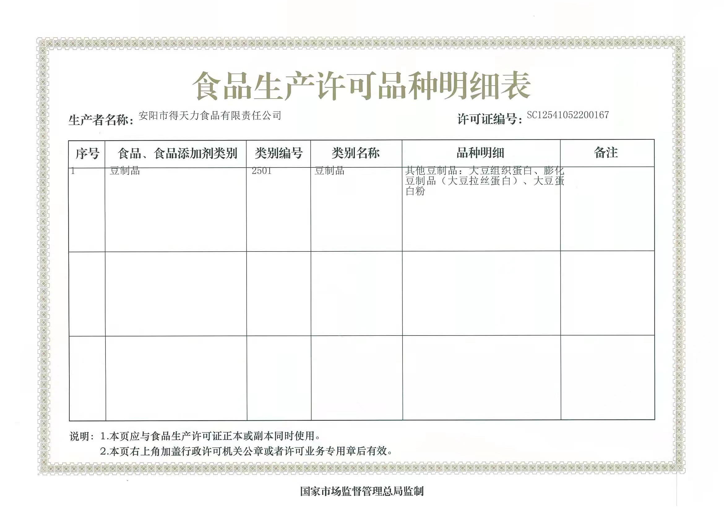 食品生產(chǎn)許可品種明細表